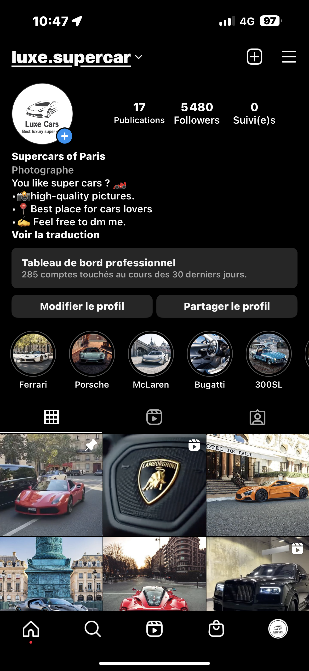 Bonjour je mets en vente mon compte Instagram de passionnés de voiture de luxe.